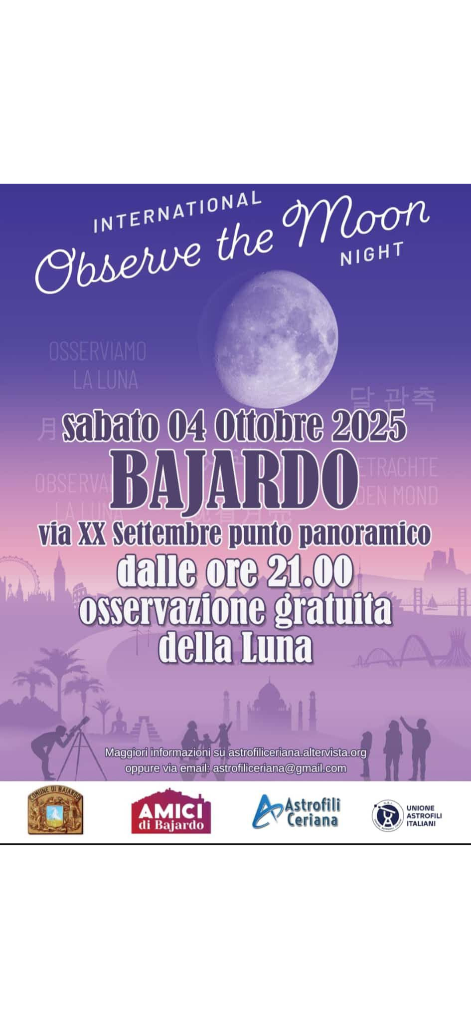 Sabato 4 Ottobre dalle 21.00 alle 24.00 durante la quale potremo osservare la Luna con diversi strumenti, chiacchierare e confrontarci.