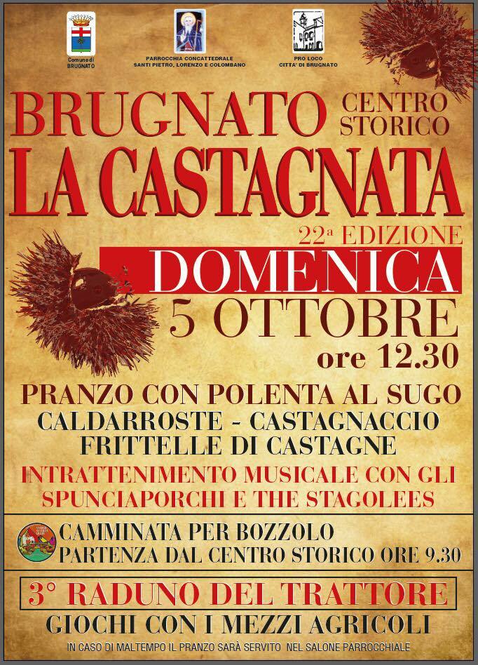 La tradizionale Castagnata a Brugnato è giunta alla sua 22^ edizione e avrà luogo Domenica 5 ottobre nel suggestivo centro storico.