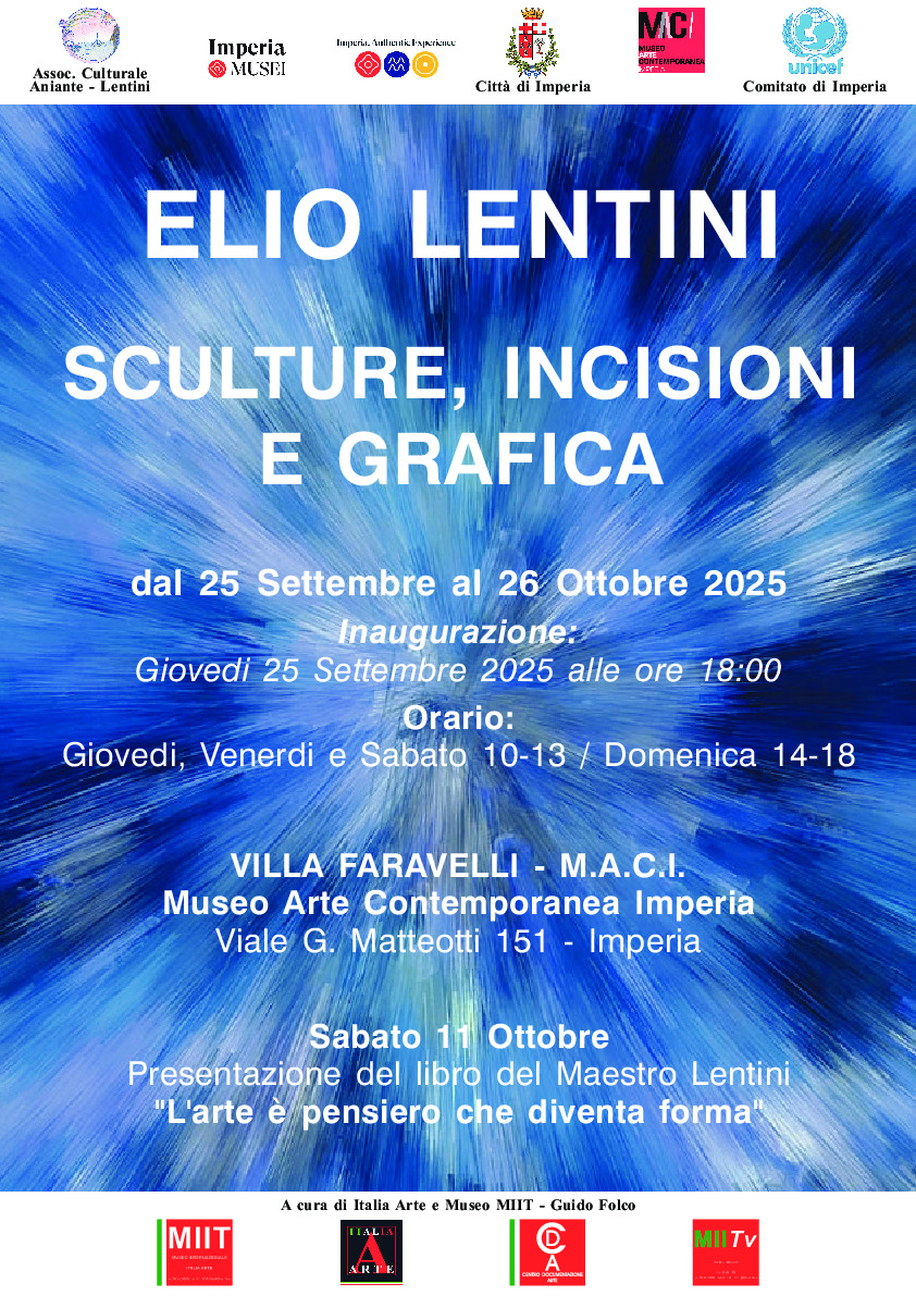 La mostra vuole essere anche momento celebrativo dell'attività del maestro, che a Imperia ha già lasciato tracce in passato - ricordiamo la posa della scultura Mossi dal vento nel 2022 all'interno del Palazzo del Governo - e comprenderà la presentazione del libro di memorie personali e testi di critici e amici: L'arte è pensiero che diventa forma sarà raccontato da Lentini sabato 11 ottobre alle ore 17:00.