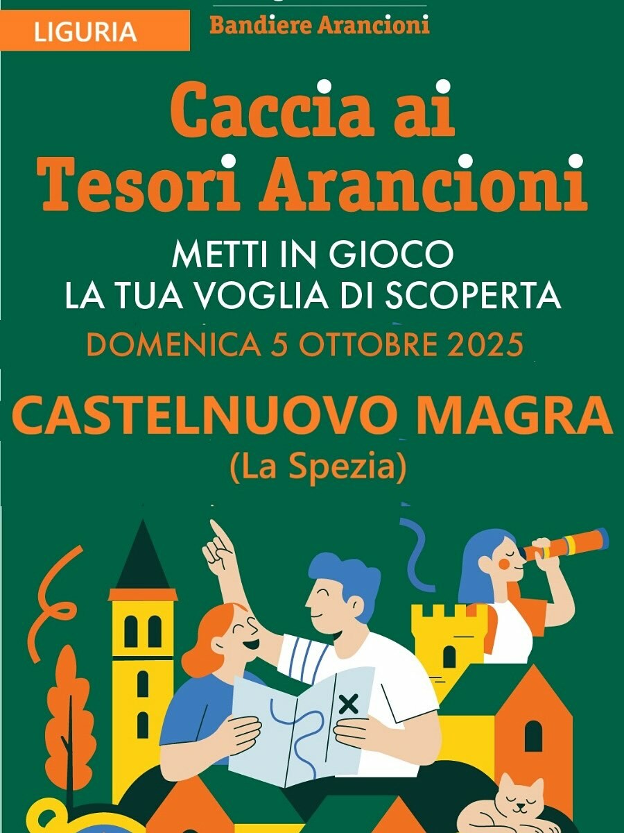 🎉 Domenica 5 ottobre a Castelnuovo Magra (SP) torna la Caccia ai Tesori Arancioni dalle 15 alle 18!