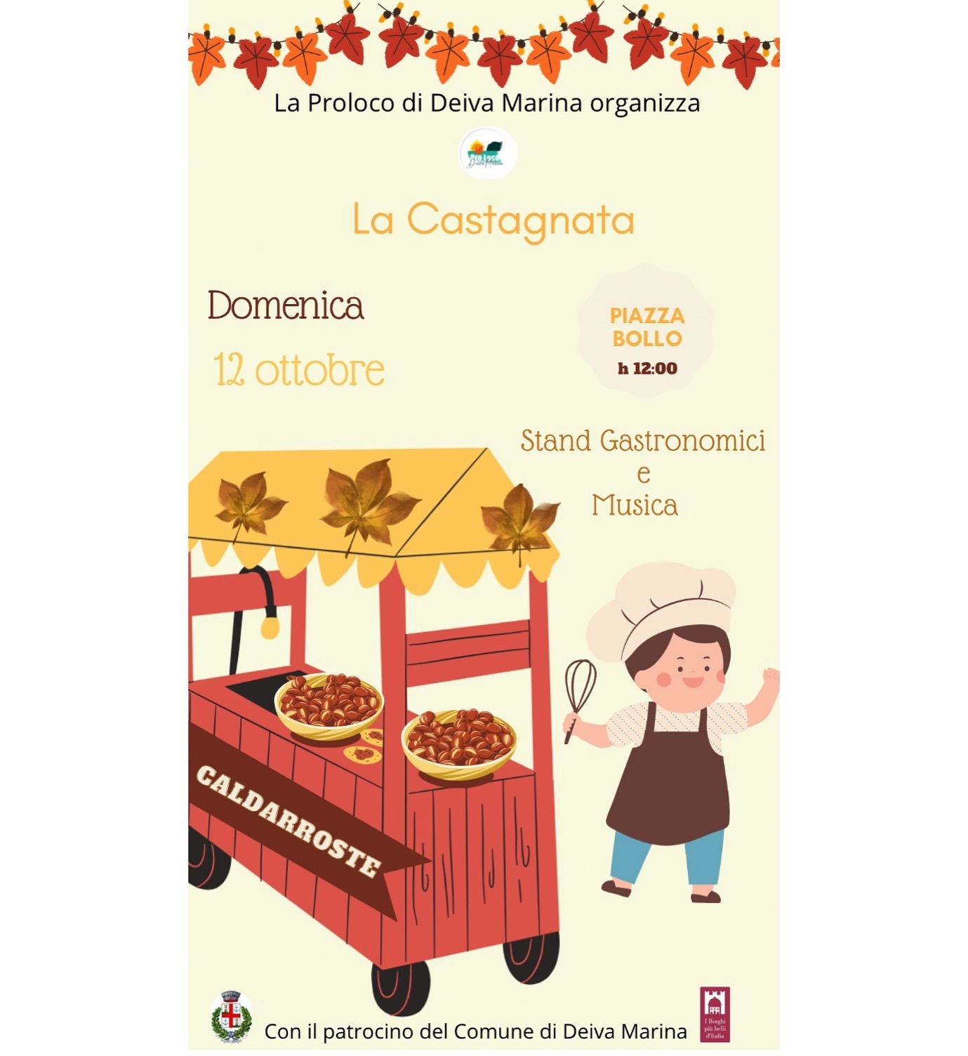 Vi aspettiamo in Piazza Bollo dalle h 12 con stand gastronomici e musica 🌰