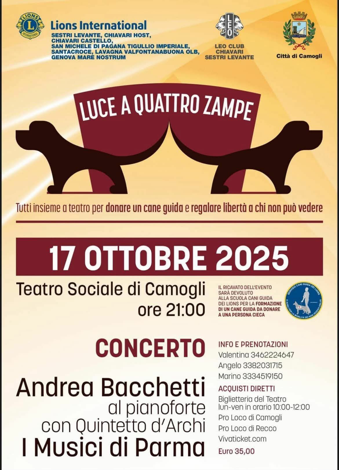 IL RICAVATO DELL'EVENTO SARÀ DEVOLUTO ALLA SCUOLA CANI GUIDA DEL LIONS PER LA FORMAZIONE DI UN CANE GUIDA A UNA PERSONA CIECA.