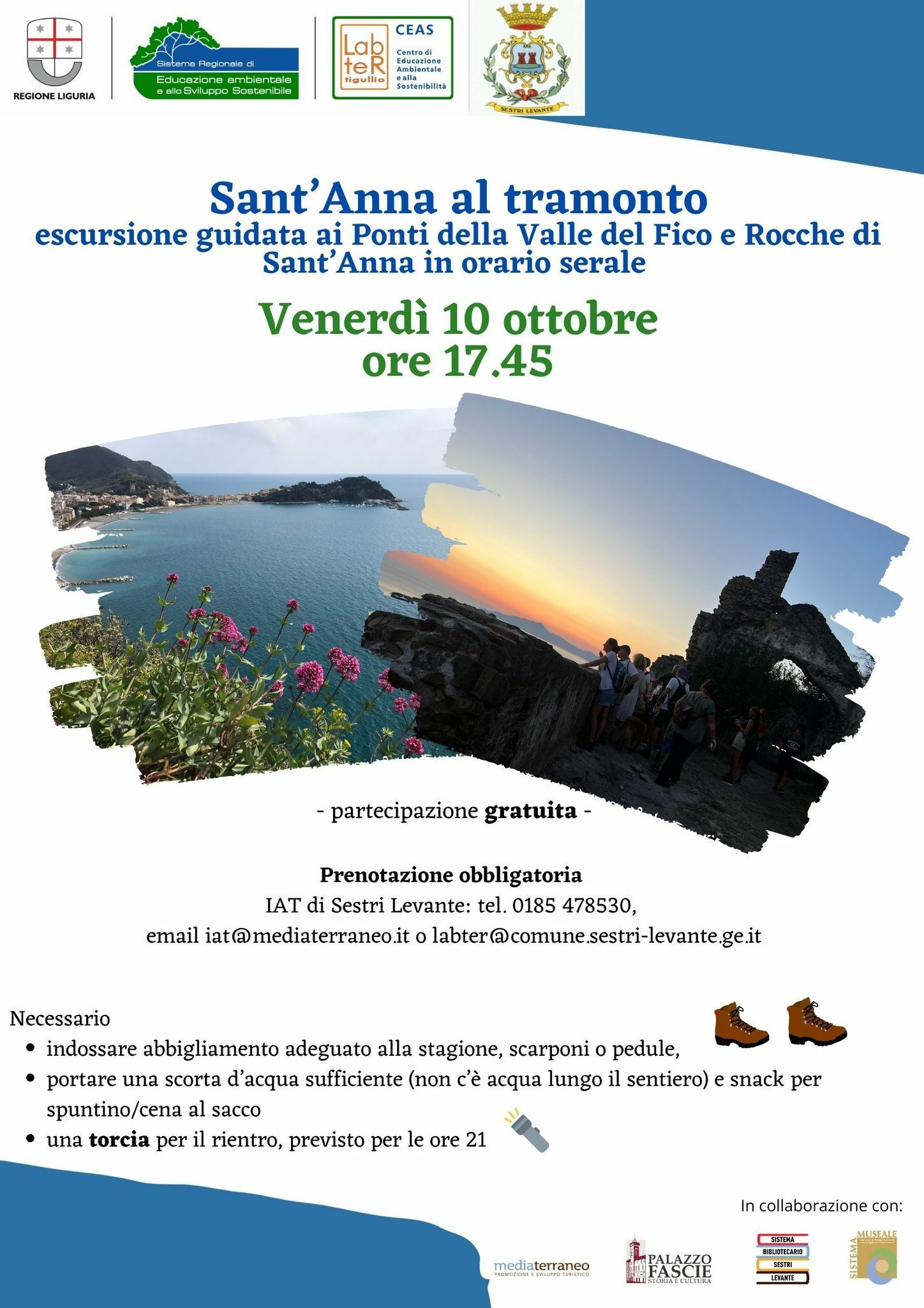 Venerdì 10 ottobre lasciatevi sorprendere nel corso dell’escursione guidata “Sant’Anna al tramonto”.
