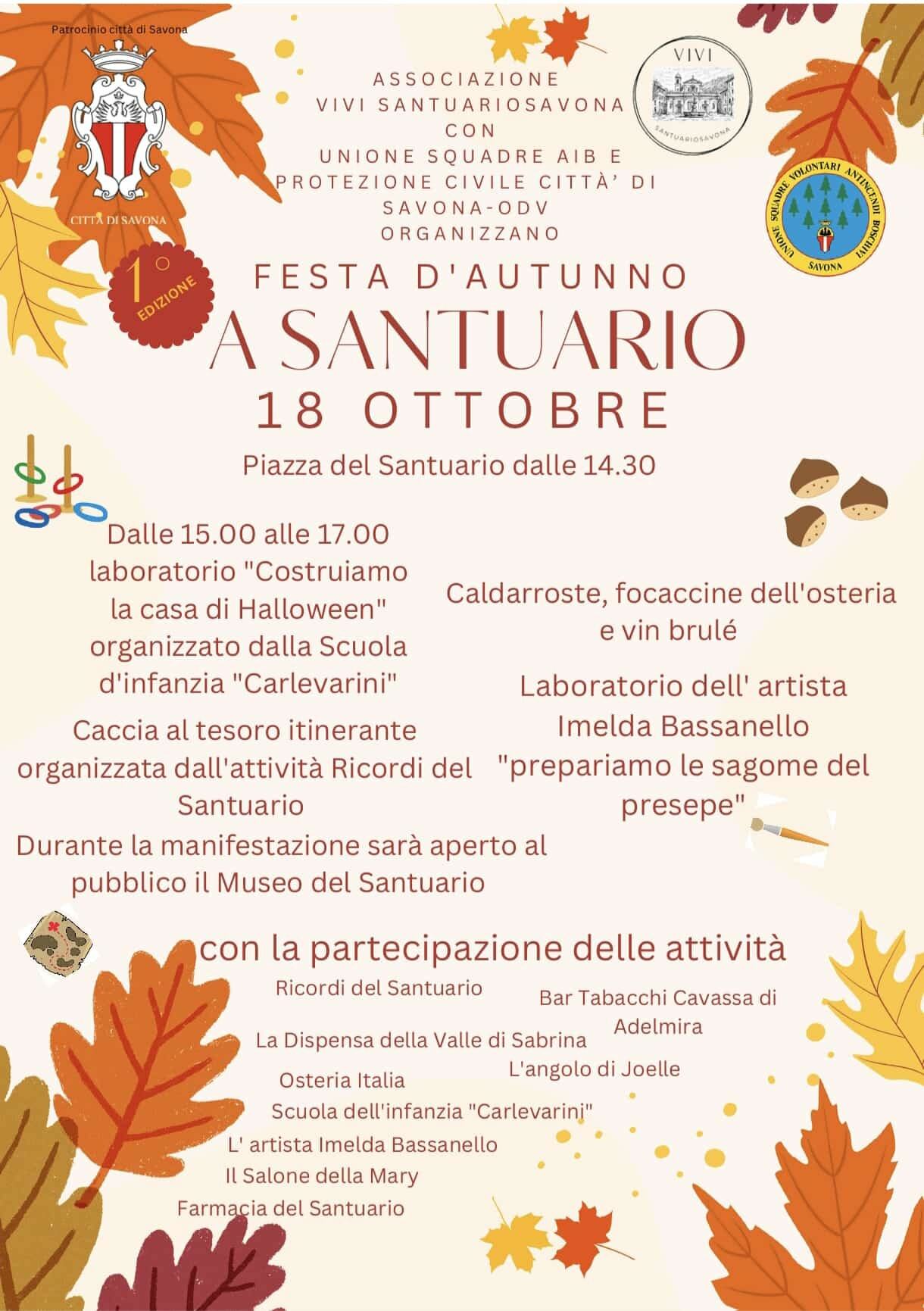 ASSOCIAZIONE VIVI SANTUARIOSAVONA CON UNIONE SQUADRE AIB E PROTEZIONE CIVILE CITTÀ DI SAVONA - ODV ORGANIZZANO la 1° EDIZIONE della FESTA D'AUTUNNO A SANTUARIO