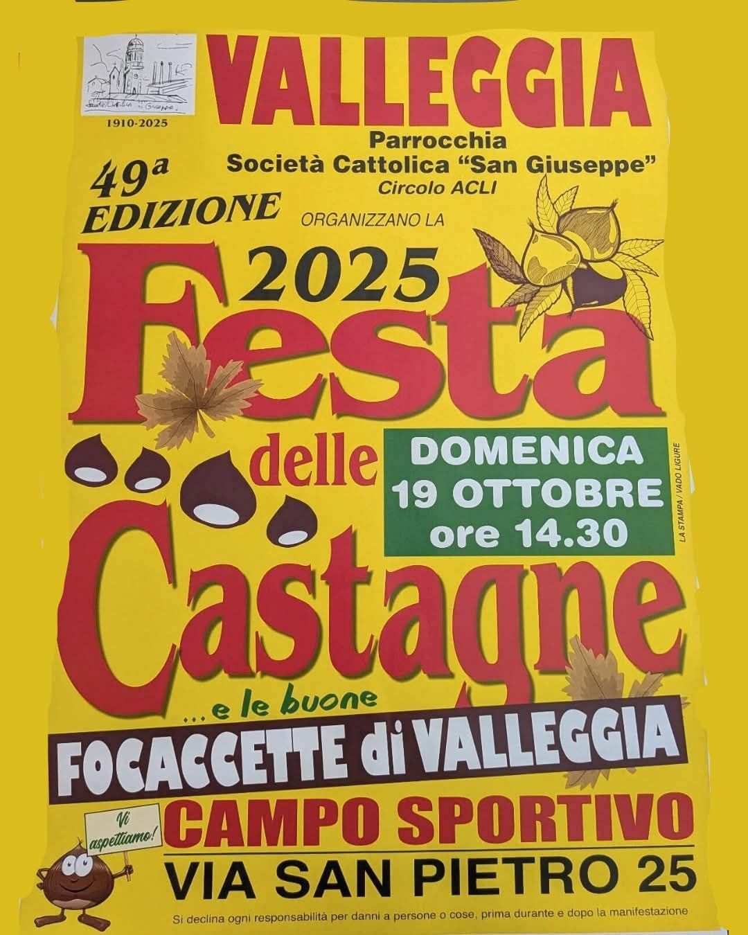 Caldarroste e focaccette di Valleggia presso Campo sportivo in via san Pietro 25