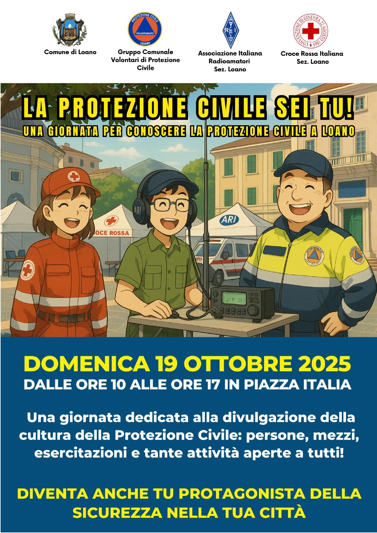 Il Comune di Loano, in collaborazione con il Gruppo Comunale dei Volontari di Protezione Civile, la sezione di Loano dell'Associazione Italiana Radioamatori e il comitato loanese della Croce Rossa Italiana, organizza la prima edizione de “La Protezione Civile sei tu”, una giornata interamente dedicata alla divulgazione della cultura della Protezione Civile.