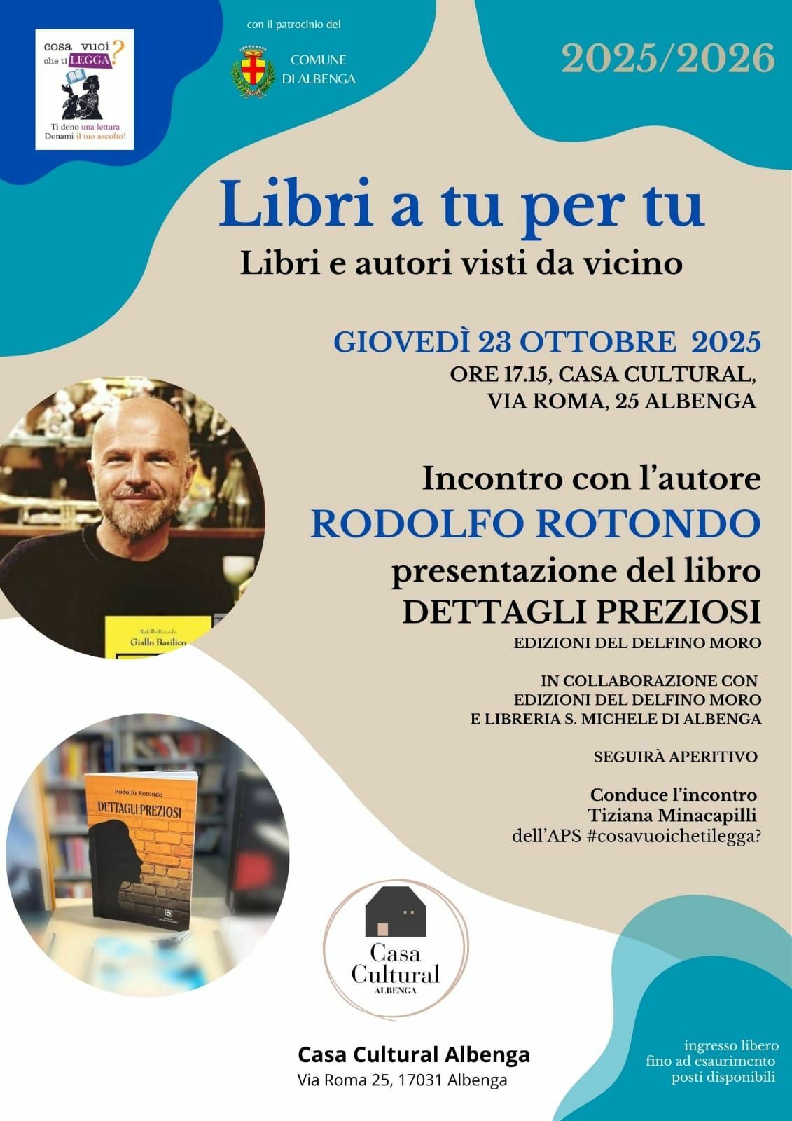 Incontro con l’autore RODOLFO ROTONDO con la presentazione del libro DETTAGLI PREZIOSI - EDIZIONI DEL DELFINO MORO