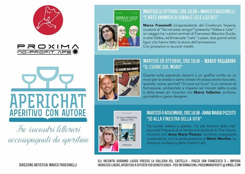 “AperiChat – Aperitivo con l’autore” rassegna di presentazioni letterarie con aperitivo a cura di Proxima no-profit aps. Saranno protagonisti libri e autori legati al territorio che dialogheranno con il pubblico sui temi dell’arte, della città e della memoria, creando un ponte ideale con i sogni e le atmosfere delle opere in mostra.