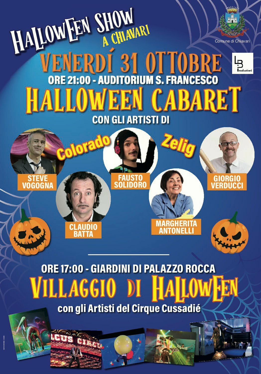🎃alle 21, invece, il sipario si alzerà sull’Halloween Cabaret, in scena all’Auditorium San Francesco, con un cast di comici di primo piano: Steve Vogogna, Claudio Batta, Fausto Solidoro, Margherita Antonelli e Giorgio Verducci.