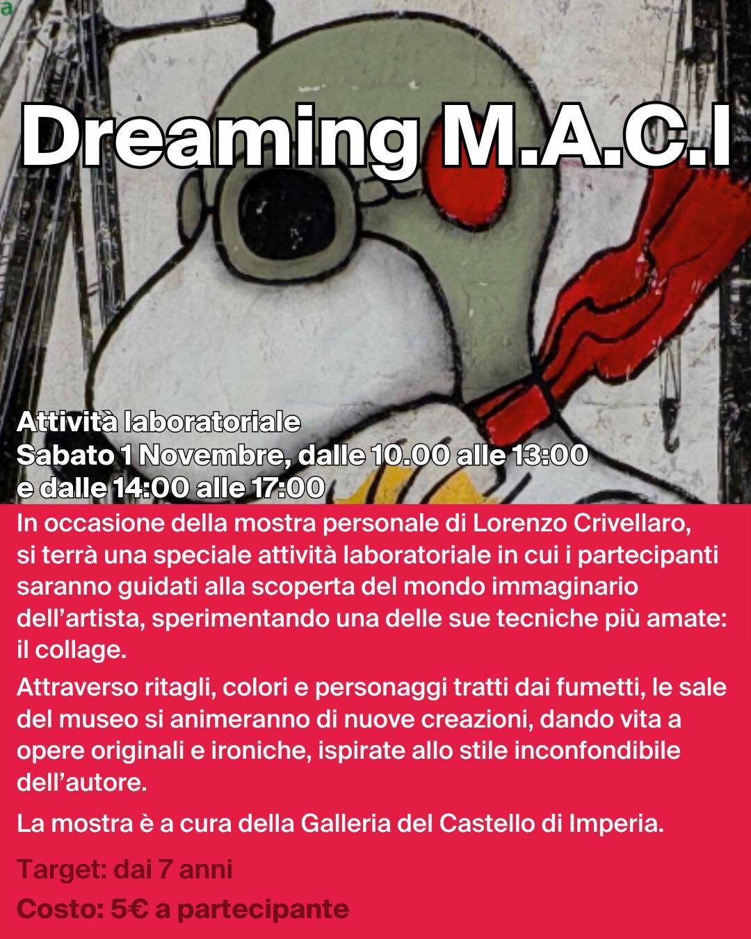 Sabato 1° Novembre, dalle 10.00 alle 13:00 e dalle 14:00 alle 17:00, in occasione della mostra personale di Lorenzo Crivellaro, si terrà una speciale attività laboratoriale in cui i partecipanti saranno guidati alla scoperta del mondo immaginario dell’artista, sperimentando una delle sue tecniche più amate: il collage.
