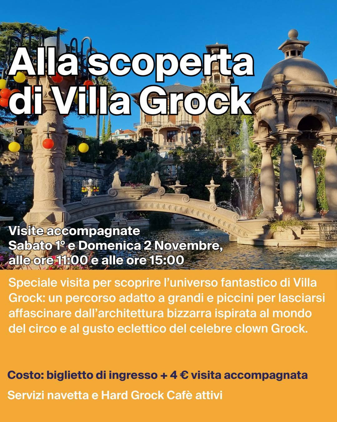 Sabato 1° e Domenica 2 Novembre alle ore 11:00 e alle ore 15:00, Villa Grock ospiterà una speciale visita per scoprire l’universo fantastico di Villa Grock: un percorso adatto a grandi e piccini per lasciarsi affascinare dall’architettura bizzarra ispirata al mondo del circo e al gusto eclettico del celebre clown Grock.