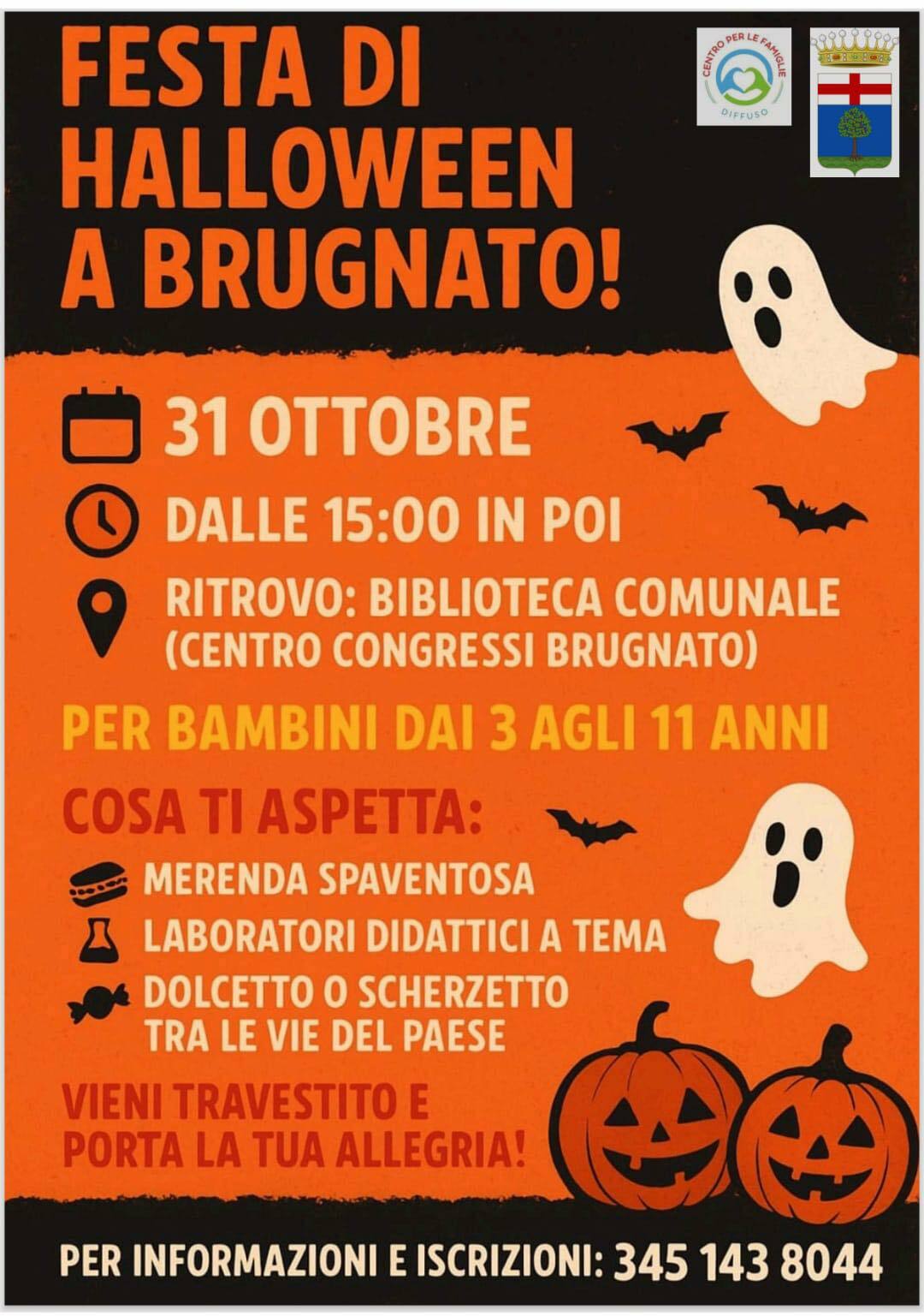 Il Comune di Brugnato, in collaborazione con il Centro Famiglie Diffuso e la Cooperativa Lindbergh, invita i bambini dai 3 agli 11 anni a trascorrere la vigilia di Ognissanti con allegria e creatività.