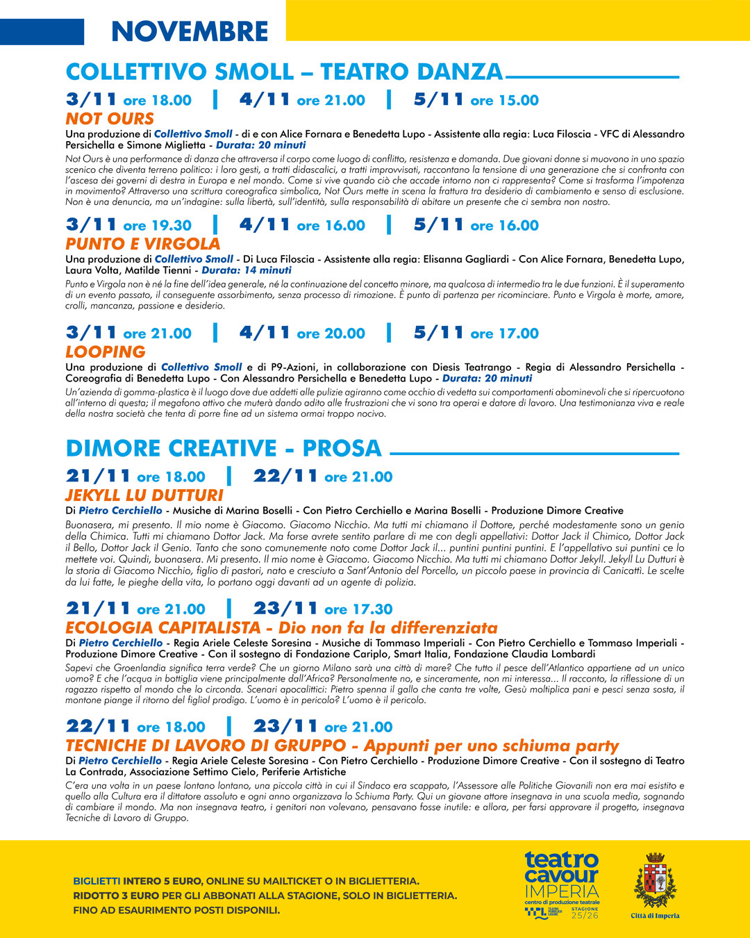 🩰 Lunedì 3 novembre ore 18.00 | Martedì 4 ore 21.00 | Mercoledì 5 ore 15.00