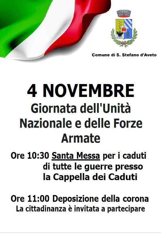 Il Comune di Santo Stefano d’Aveto invita la cittadinanza a partecipare alla cerimonia in ricordo dei Caduti di tutte le guerre, un momento di riflessione e riconoscenza verso coloro che hanno sacrificato la propria vita per la Patria.