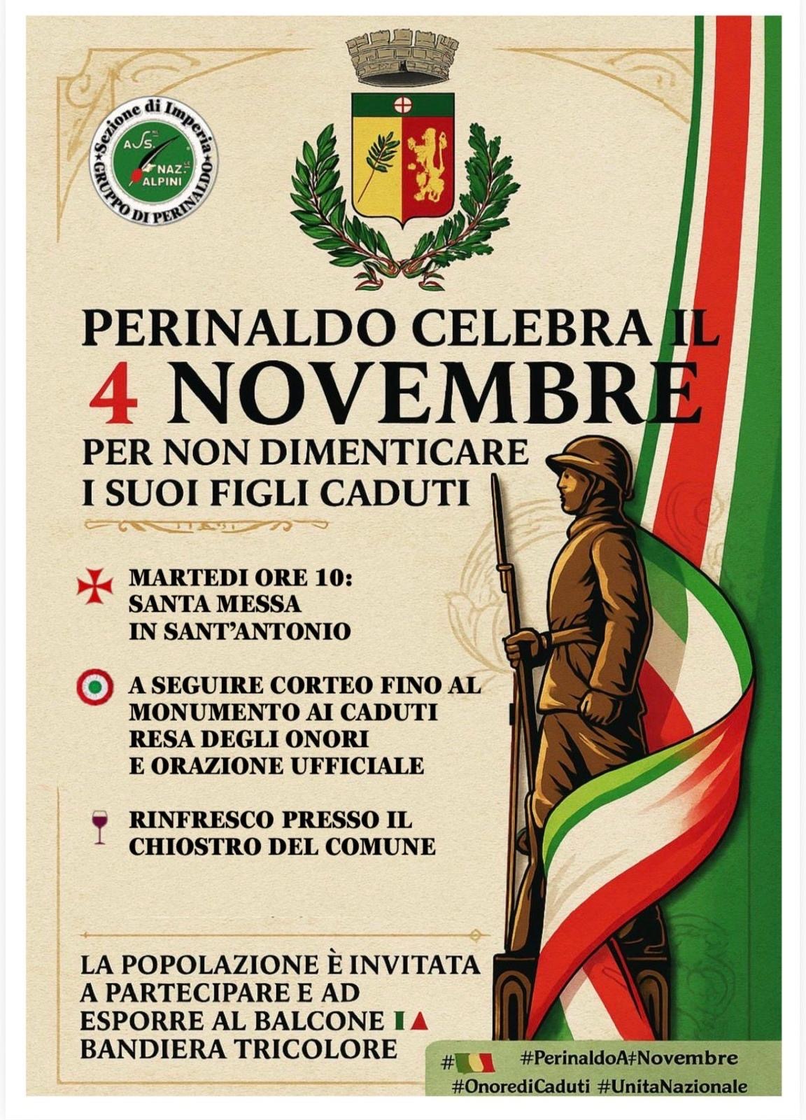 PERINALDO CELEBRA IL 4 NOVEMBRE PER NON DIMENTICARE I SUOI FIGLI CADUTI