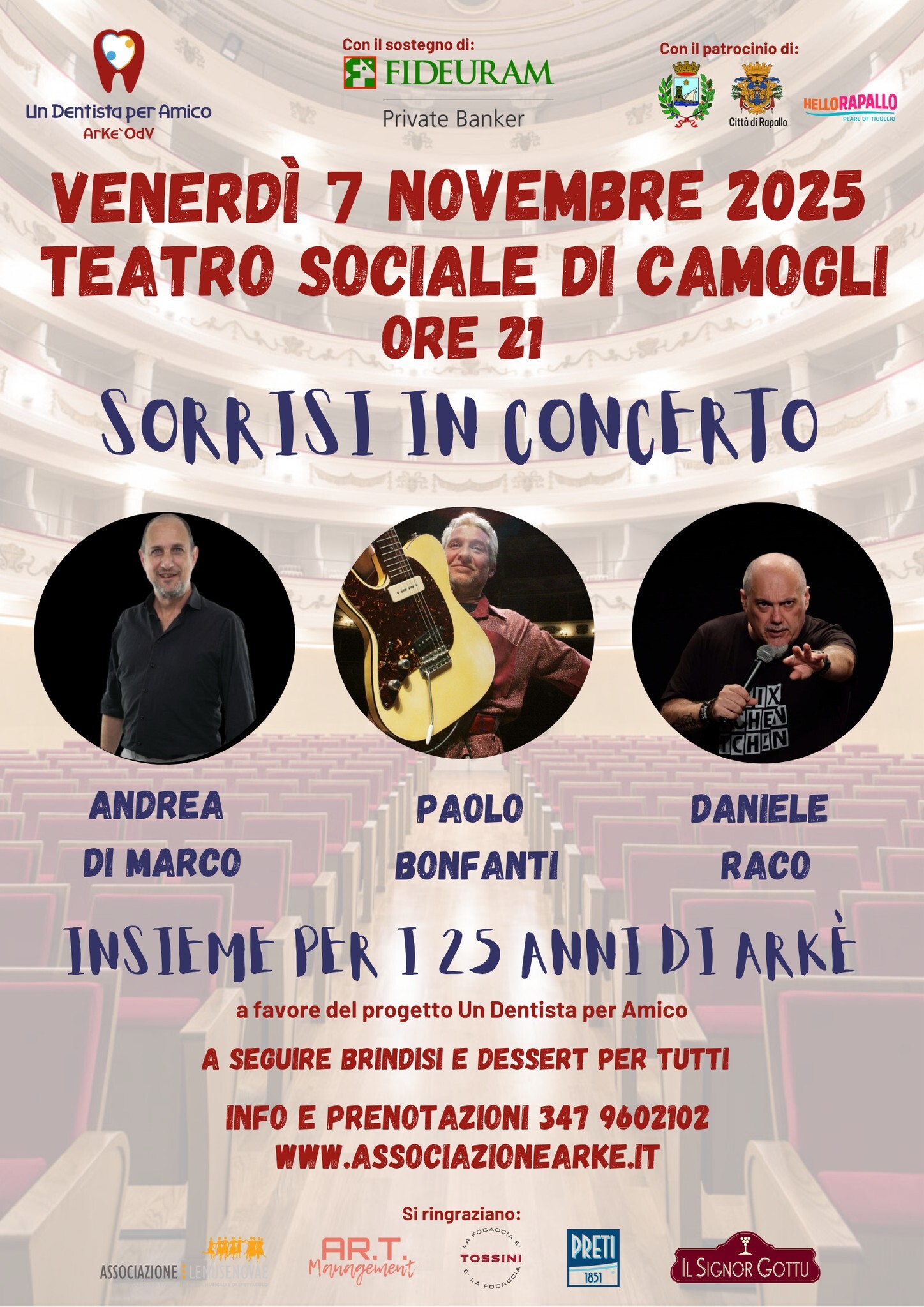 Venerdì 7 novembre 2025 alle ore 21, al Teatro Sociale Camogli, festeggiamo insieme un traguardo importante con una serata speciale tra musica e comicità!