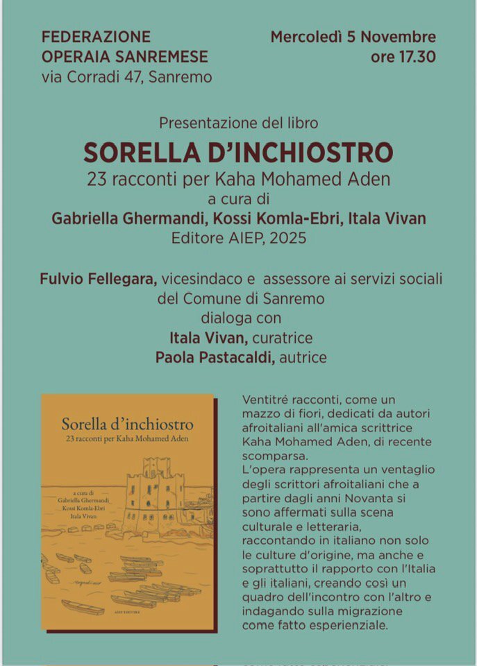 Presentazione del libro SORELLA D' INCHIOSTRO - 23 racconti per Kaha Mohamed Aden