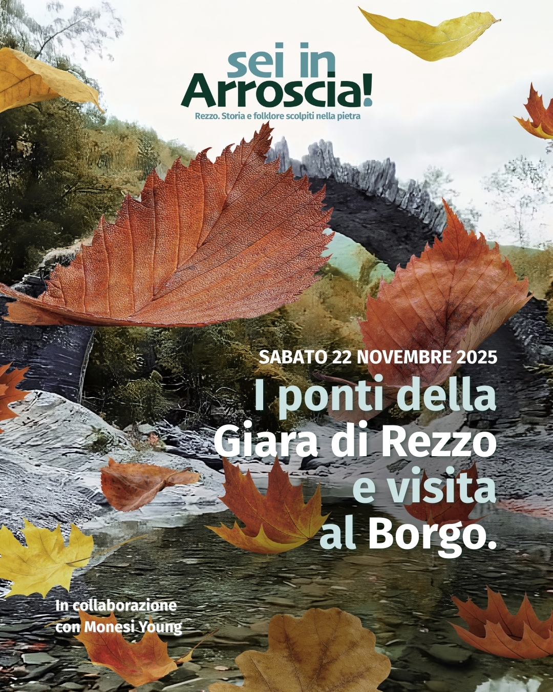 Sabato 22 novembre ti aspetta un viaggio tra ponti antichi, boschi millenari e storie di intrighi medievali. 🌿