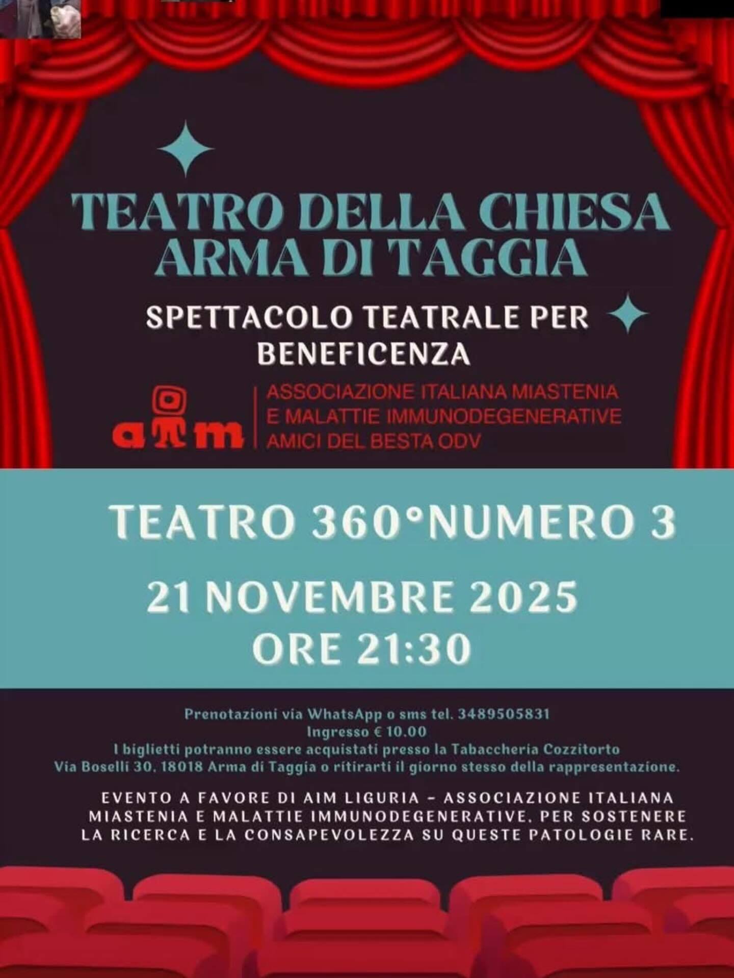 EVENTO A FAVORE DI AIM LIGURIA - ASSOCIAZIONE ITALIANA MIASTENIA E MALATTIE IMMUNODEGENERATIVE. PER SOSTENERE LA RICERCA E LA CONSAPEVOLEZZA SU QUESTE PATOLOGIE RARE.