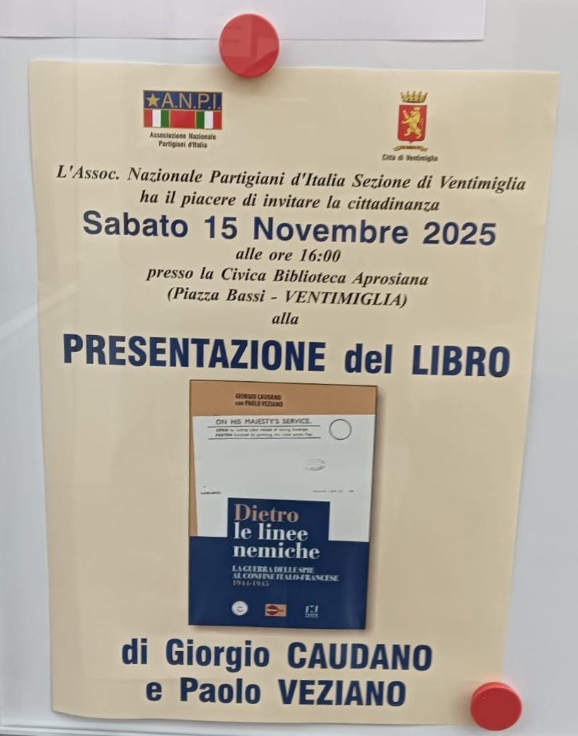Sabato 15 Novembre 2025 alle ore 16:00 presso la Civica Biblioteca Aprosiana (Piazza Bassi - VENTIMIGLIA) alla PRESENTAZIONE del LIBRO di Giorgio CAUDANO e Paolo VEZIANO Dietro le linee nemiche LA GUERRA DELL'89-91: IL CONFLITTO BALCANICO 1990-1995