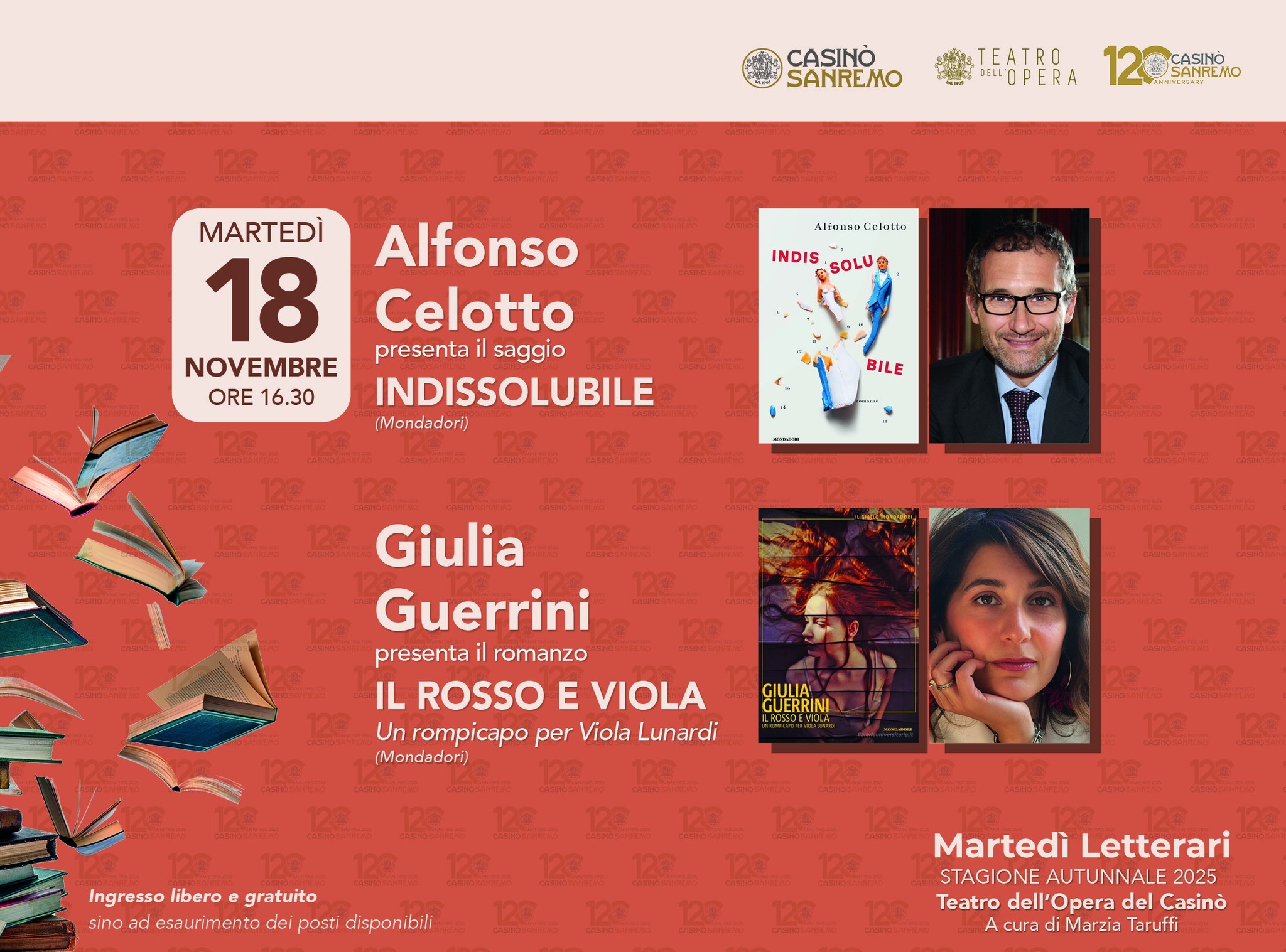 L'evento si svolgerà alle 16.30 presso il Teatro dell’Opera del Casinò, con ingresso gratuito fino a esaurimento posti. 🎭📚