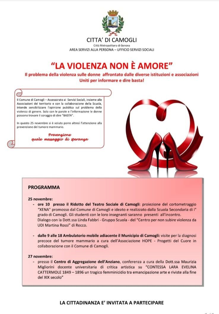 Camogli si prepara a celebrare la Giornata internazionale per l’eliminazione della violenza contro le donne, istituita dalle Nazioni Unite nel 1999, con una serie di importanti iniziative.