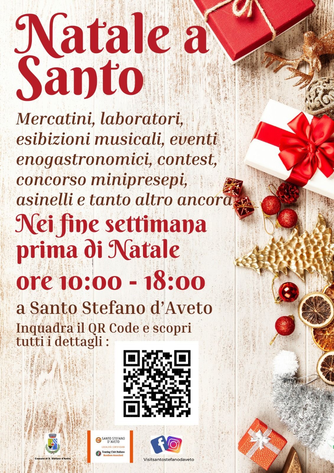Mercatini, laboratori, esibizioni musicali, eventi enogastronomici, contest, concorso minipresepi, asinelli e tanto altro ancora.