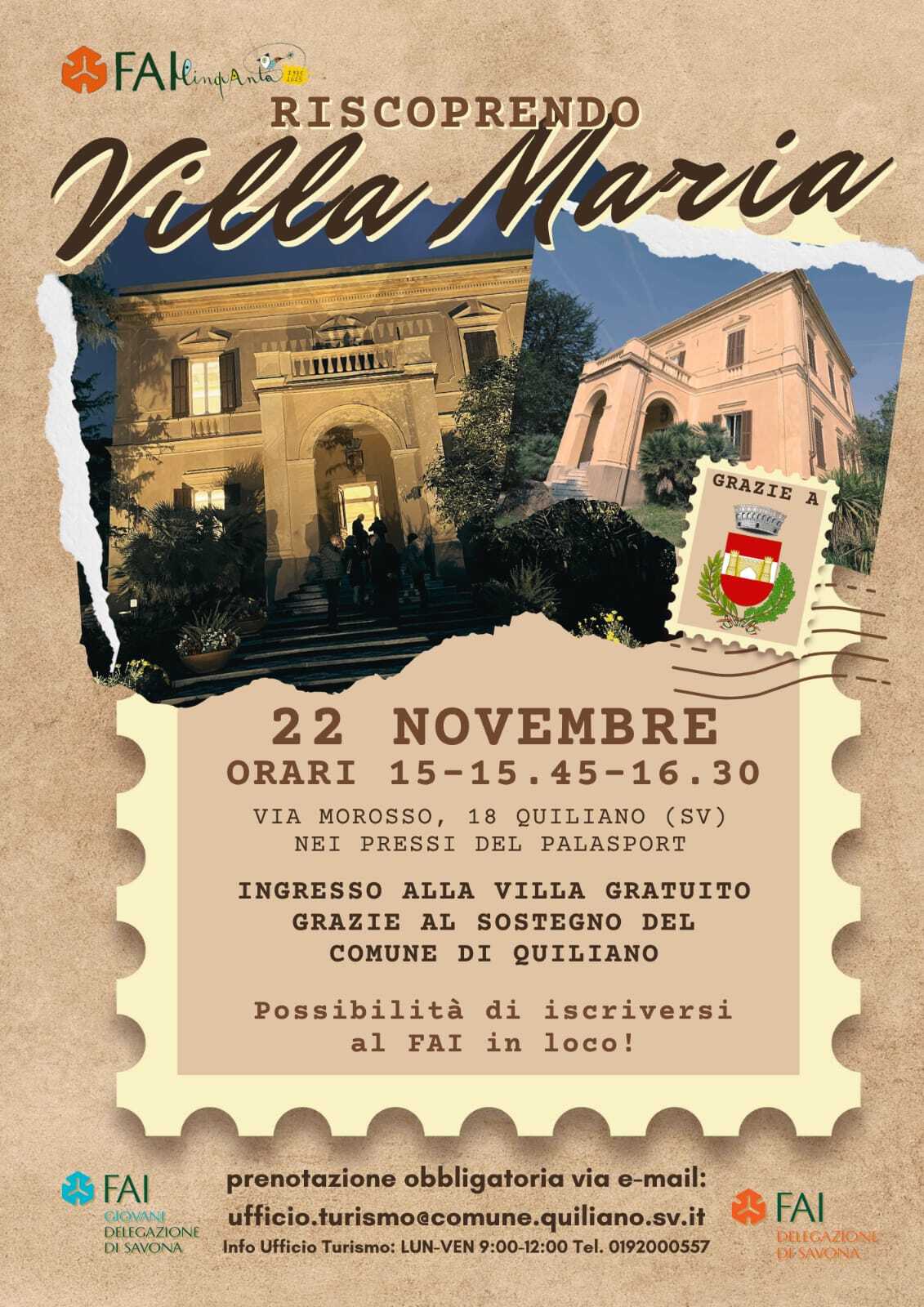 INGRESSO ALLA VILLA GRATUITO GRAZIE AL SOSTEGNO DEL COMUNE DI QUILIANO