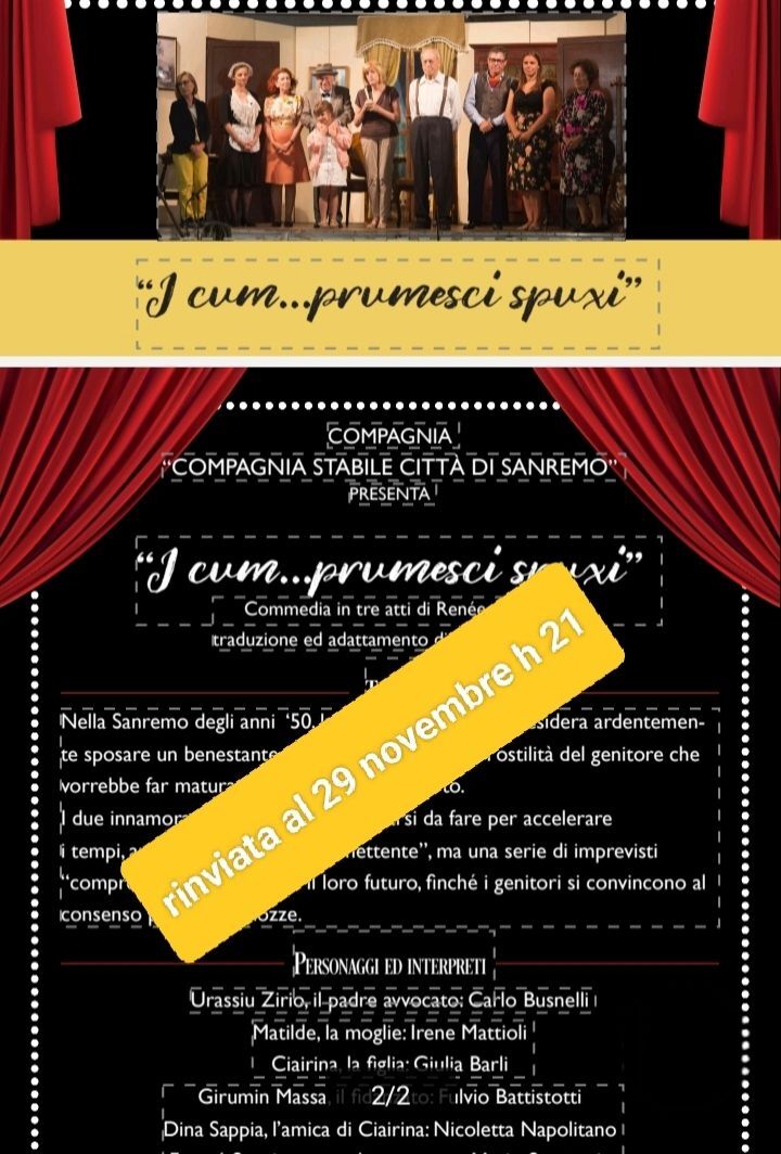 Domenica 16 novembre la compagnia stabile Città di Sanremo andrà in scena con lo spettacolo dal titolo "I cum...prumexi spusi".