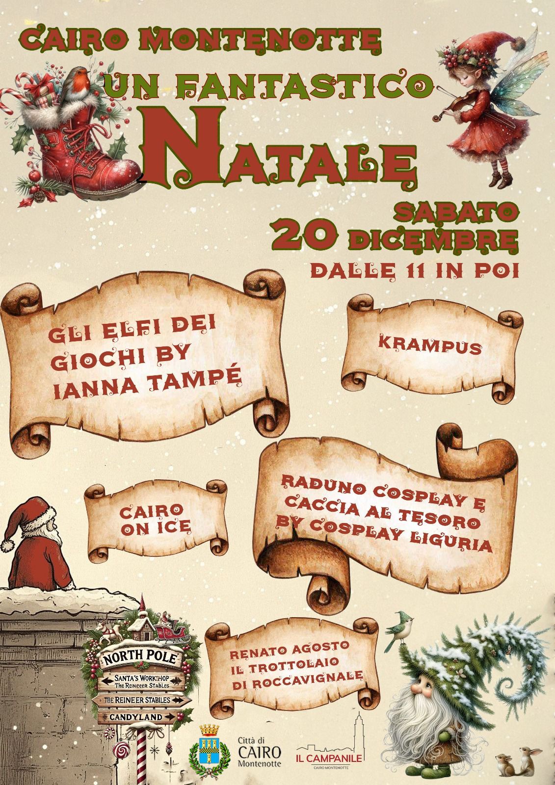 Sabato 20 dicembre ci sarà "Un fantastico Natale" dove elfi e folletti riempiranno il Centro di Cairo Montenotte!!