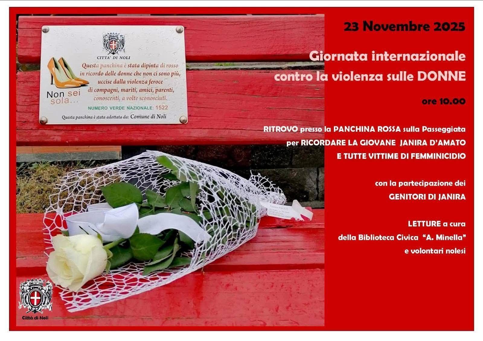 RITROVO presso la PANCHINA ROSSA sulla Passeggiata per RICORDARE LA GIOVANE JANIRA D’AMATO E TUTTE VITTIME DI FEMMINICIDIO con la partecipazione dei GENITORI DI JANIRA.