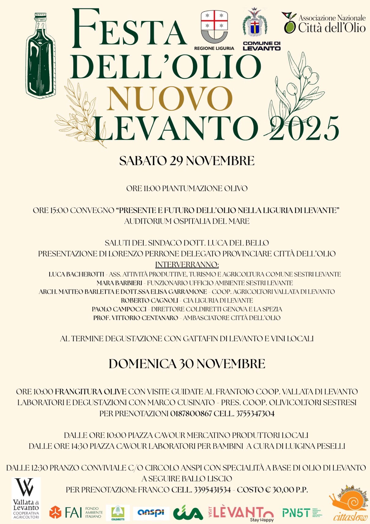 ORE 15:00 CONVEGNO "PRESENTE E FUTURO DELL'OLIO NELLA LIGURIA DI LEVANTE" AUDITORIUM OSPITALIA DEL MARE