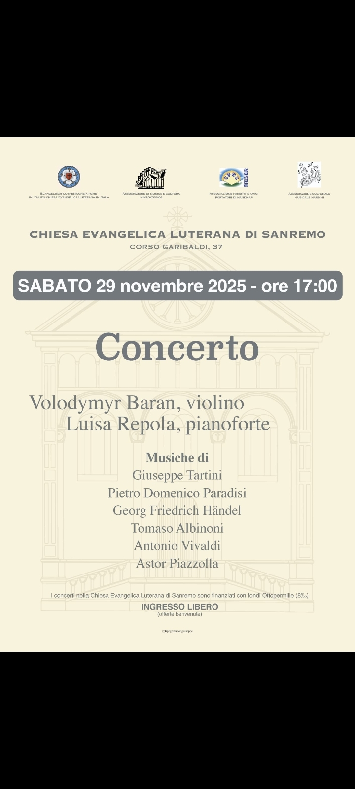 I concerti nella Chiesa Evangelica Luterana di Sanremo sono finanziati con fondi Obiettivo (B1).