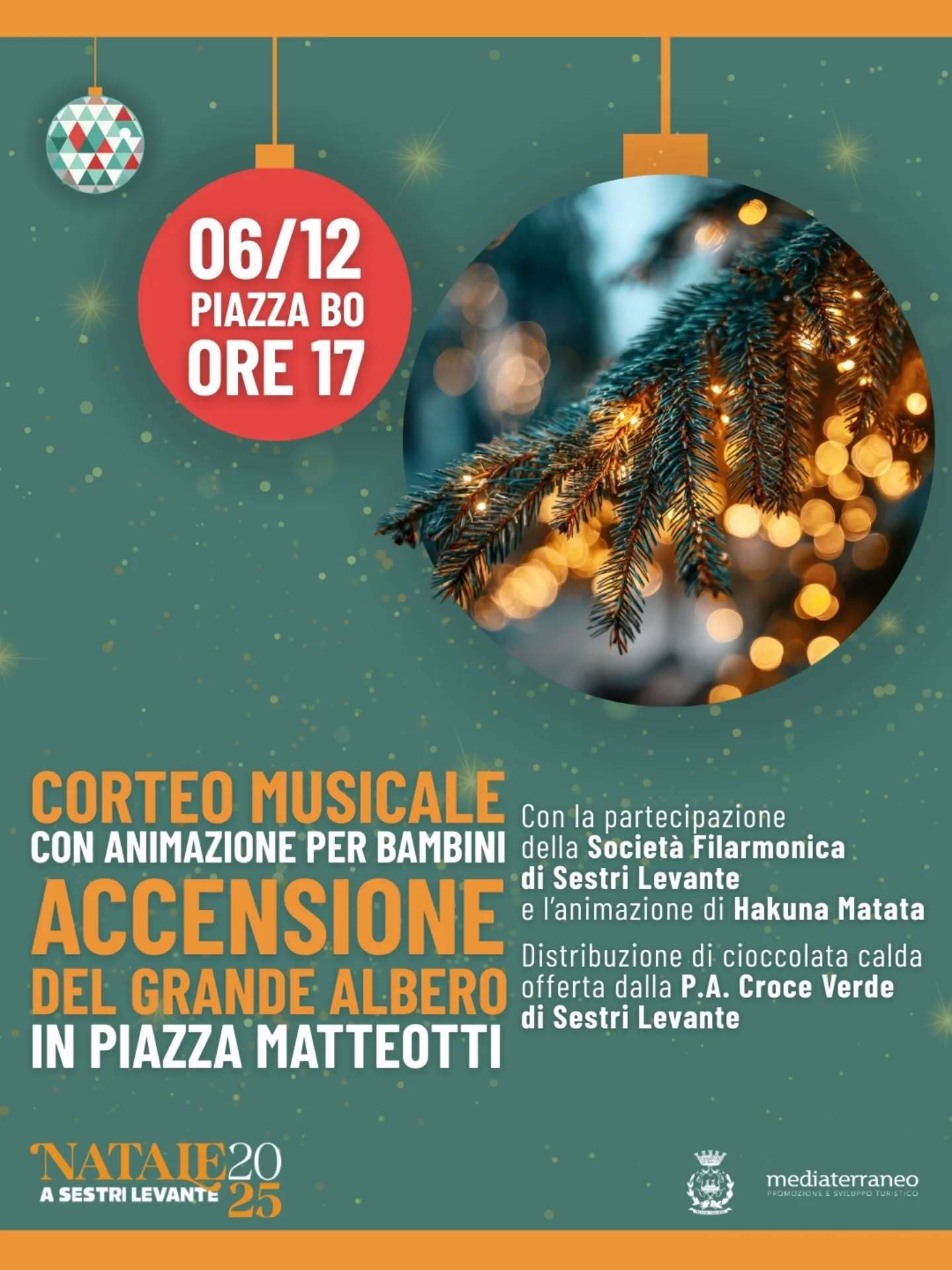 🎄✨ Corteo musicale, animazione per bambini e accensione del grande albero di Natale in Piazza Matteotti!