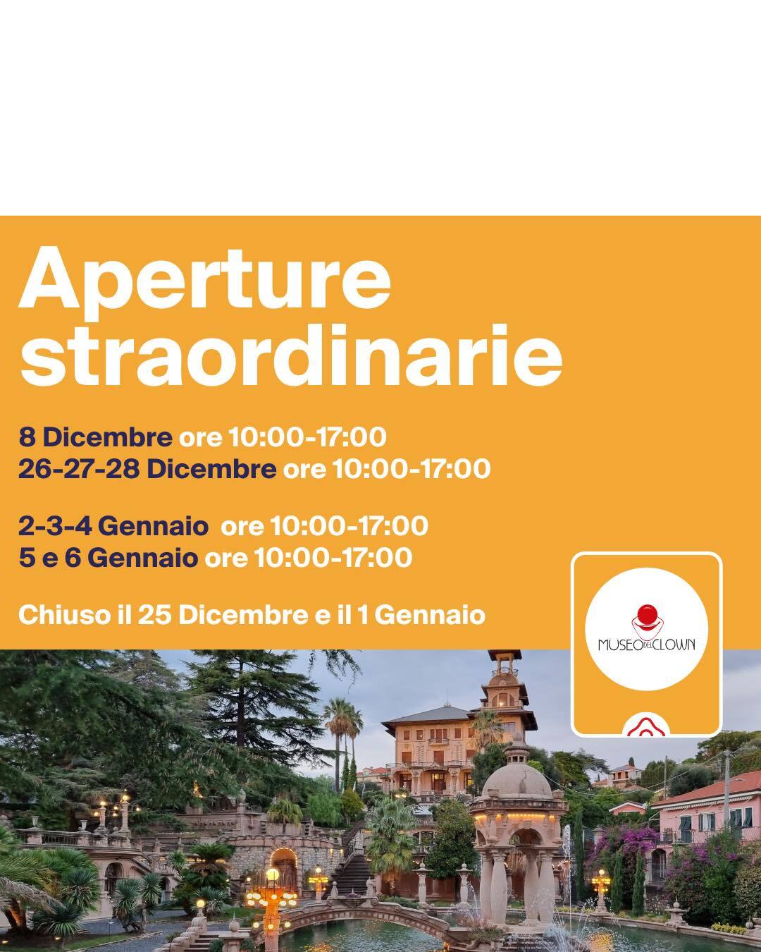 Villa Grock sarà aperta straordinariamente, con orario continuato, nelle seguenti giornate: