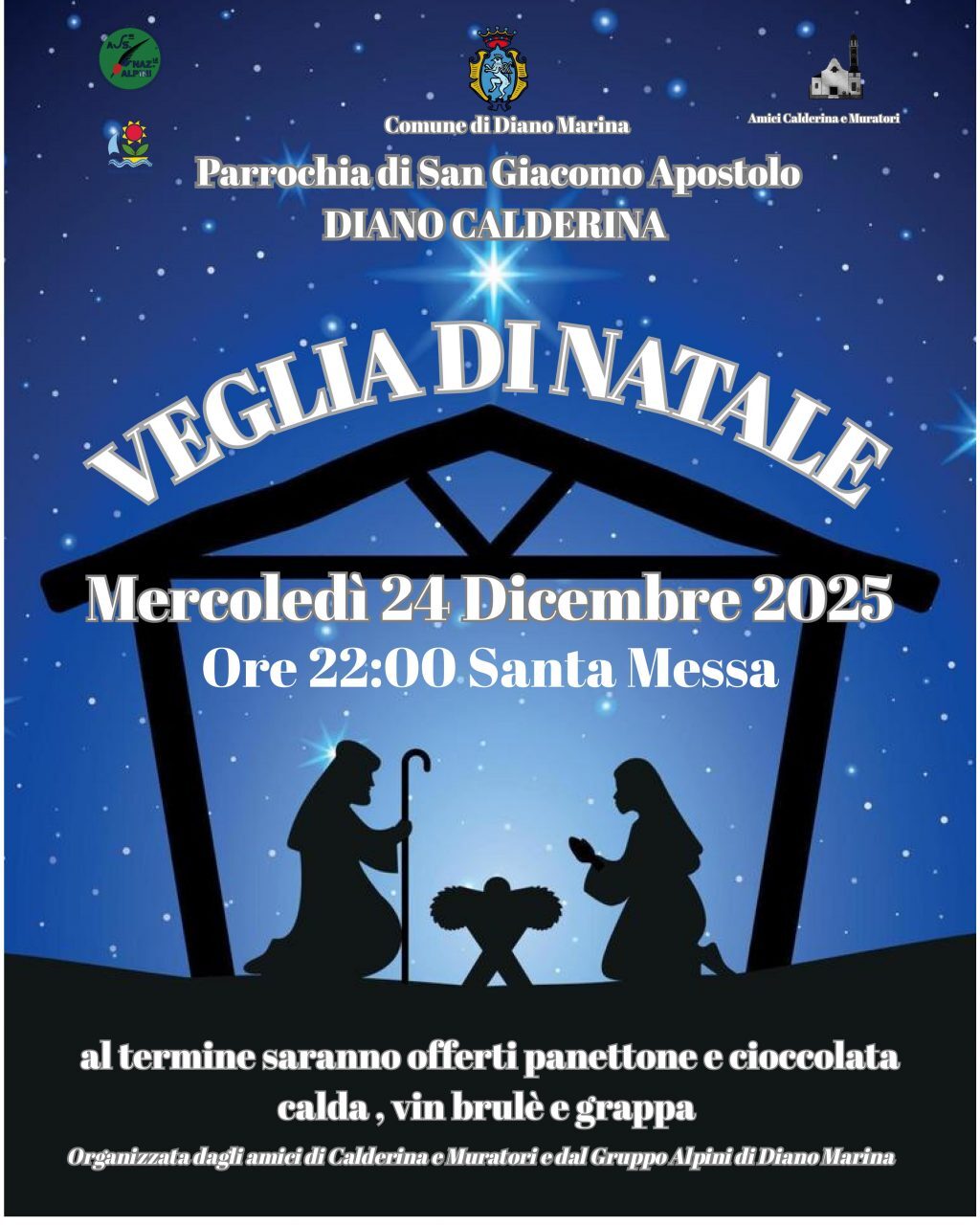 Veglia di Natale organizzata dal Circolo Amici di Calderina e Muratori in collaborazione con il Gruppo Alpini di Diano Marina.