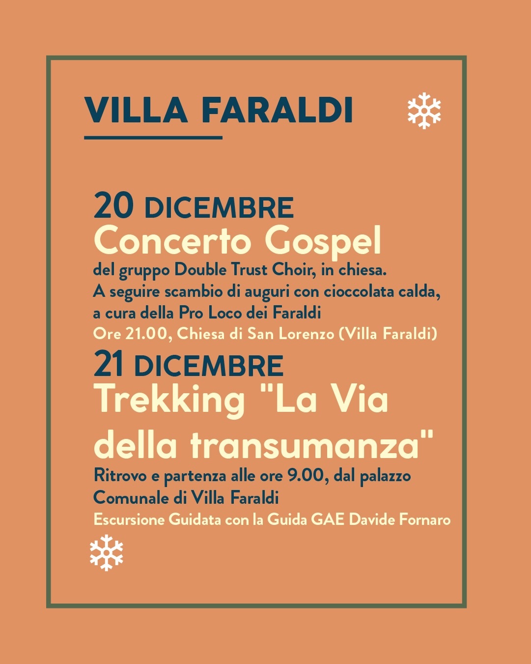 Ritrovo e partenza alle ore 9.00, dal palazzo Comunale di Villa Faraldi