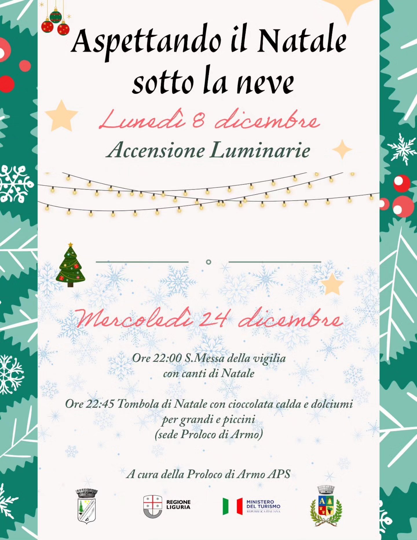 Ore 22:45 Tombola di Natale con cioccolata calda e dolcini per grandi e piccini (sede Proloco di Armo)