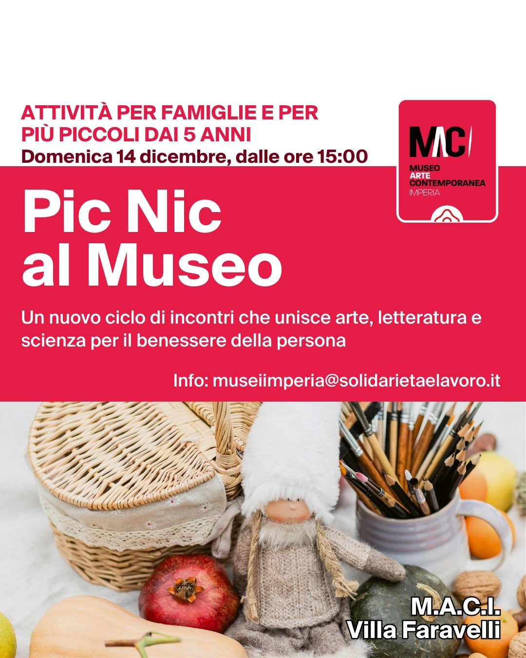 Domenica 14 Dicembre, dalle ore 15:00, il M.A.C.I. di Villa Faravelli ospiterà l’attività per famiglie e per i più piccoli dai 5 anni “Pic nic al Museo”.