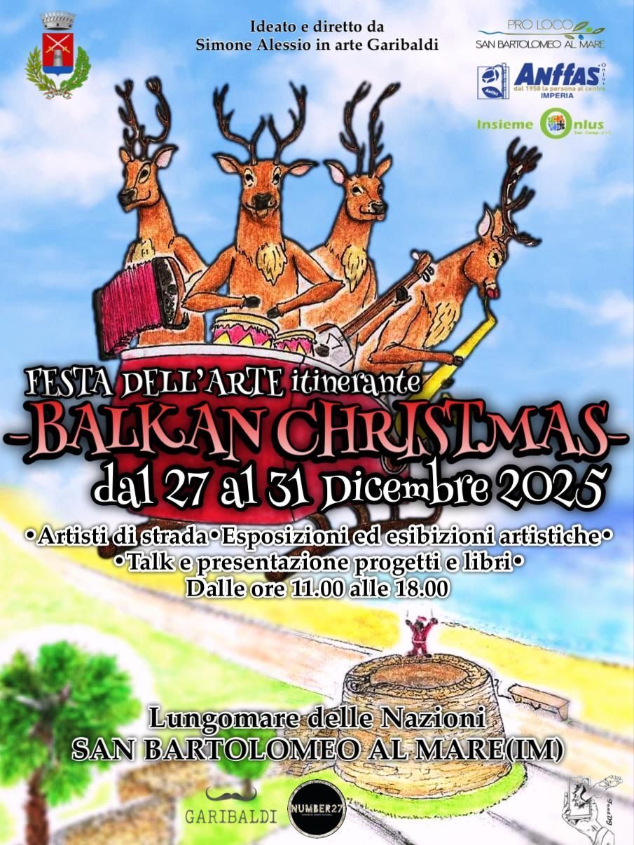 Dal 27 al 31 Dicembre 2025, la passeggiata e l'Anfiteatro di San Bartolomeo al Mare ospiteranno la rassegna culturale "Balkan Christmas", ideata e diretta dall'artista Simone Alessio, in arte Garibaldi.