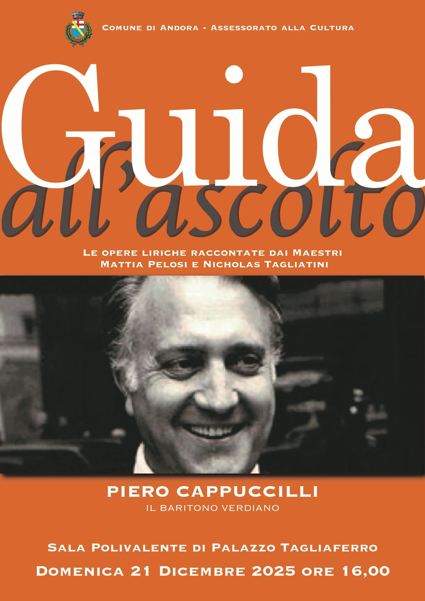 Domenica 21 dicembre alle ore 16.00 vi aspettiamo a Palazzo Tagliaferro per il terzo appuntamento della rassegna "Guida all'ascolto" 2025/2026. L'incontro con i Maestri Mattia Pelosi e Nicholas Tagliatini sarà dedicato a Piero Cappuccilli.