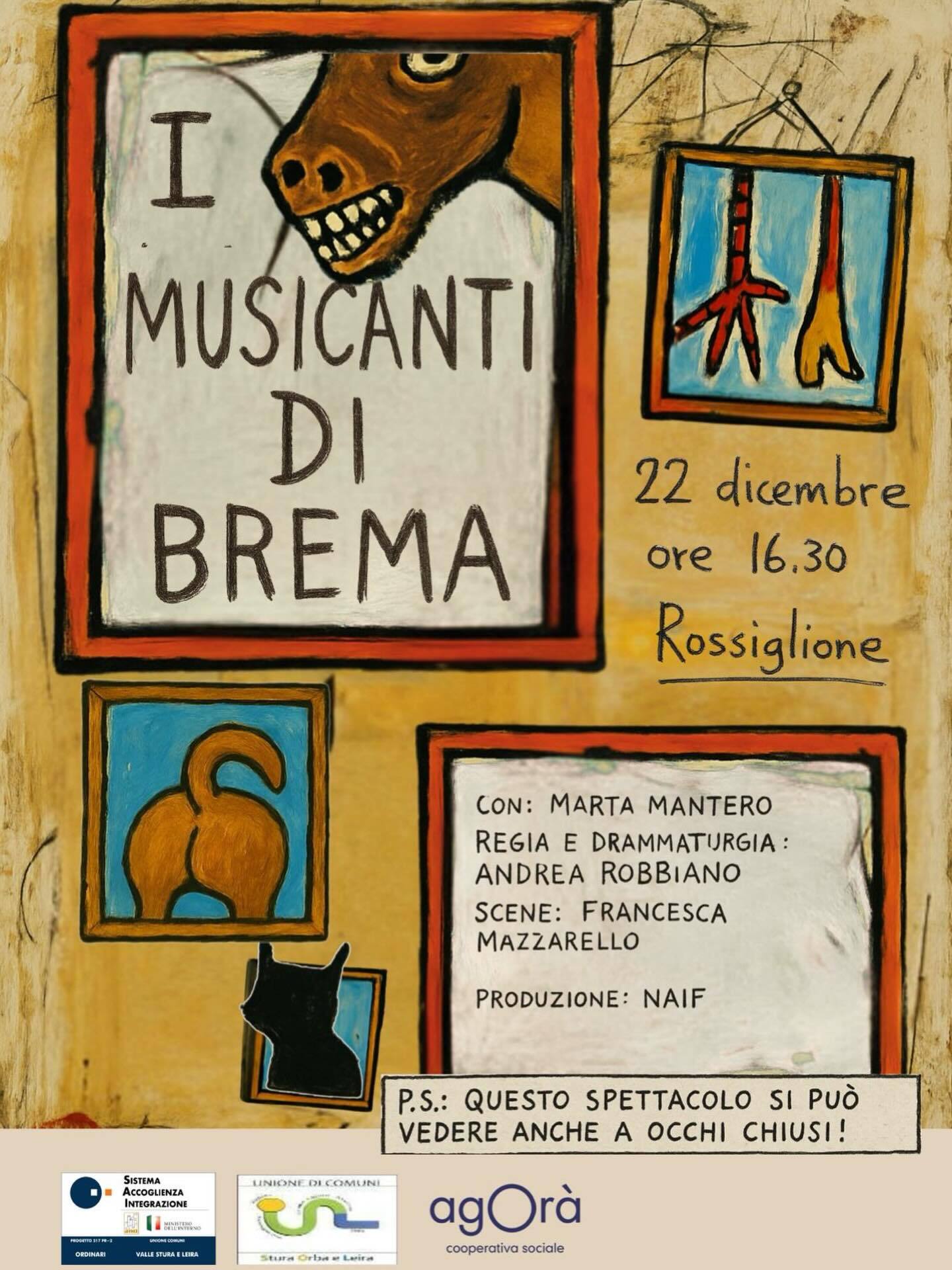 Un asino, un cane, un gatto e un gallo, ormai messi da parte, partono insieme verso Brema alla ricerca di un nuovo futuro. Tra suoni, invenzioni e incontri, scopriranno che uniti si è più forti e che ogni fragilità può diventare una risorsa.