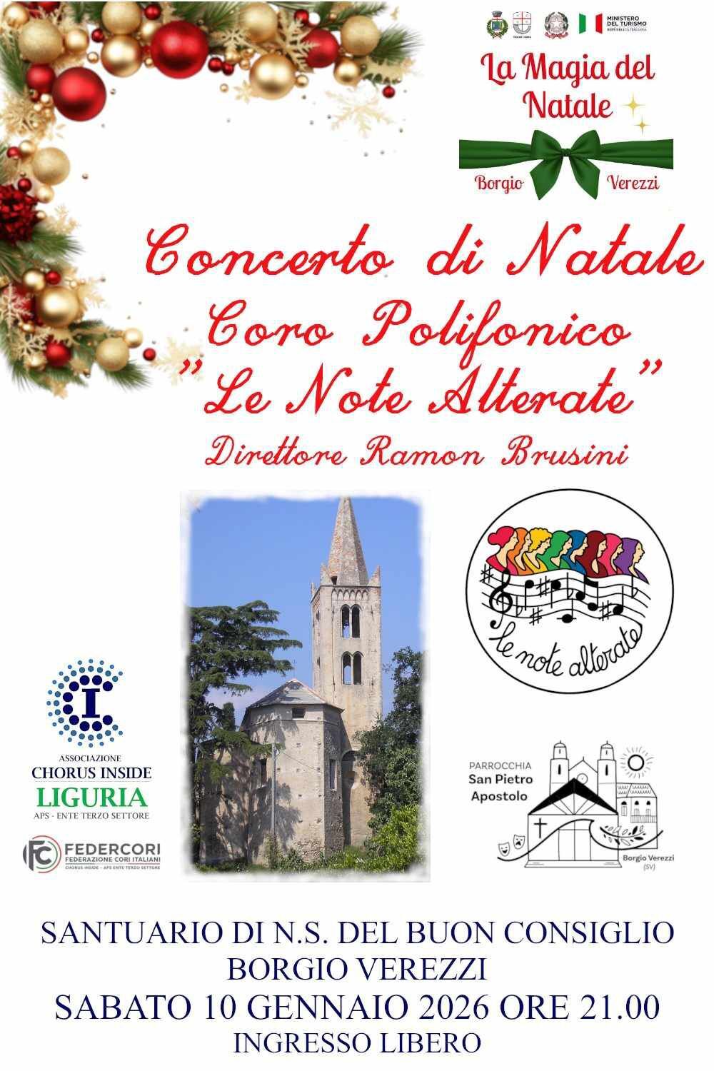 Sabato 10 gennaio ore 21 presso il Santuario N.S. del Buon Consiglio, Vi aspettiamo al Concerto Natalizio del Coro Polifonico "Le Note Alterate" diretto da Ramon Brusini