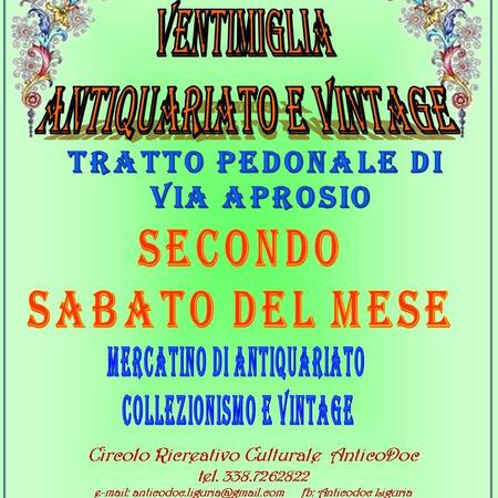 Ogni secondo sabato del mese Mercatino di Antiquariato e Vintage nel tratto pedonale di Via Aprosio dalle 9.00 alle 19.00.