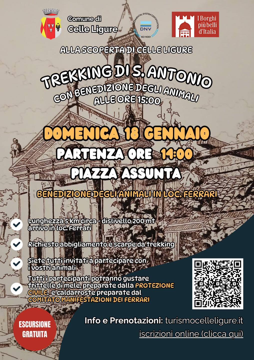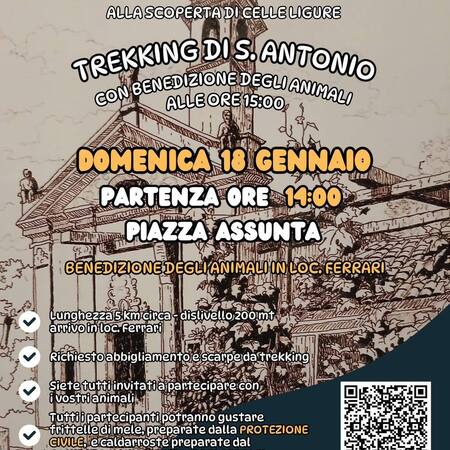 Il trekking di Sant'Antonio partirà alle ore 14.00 in Piazza dell’Assunta, per raggiungere la località Ferrari intorno alle ore 15.00, percorrendo circa 5 km 🚶♂️🚶♀️ con un dislivello di 200 metri ⛰️.