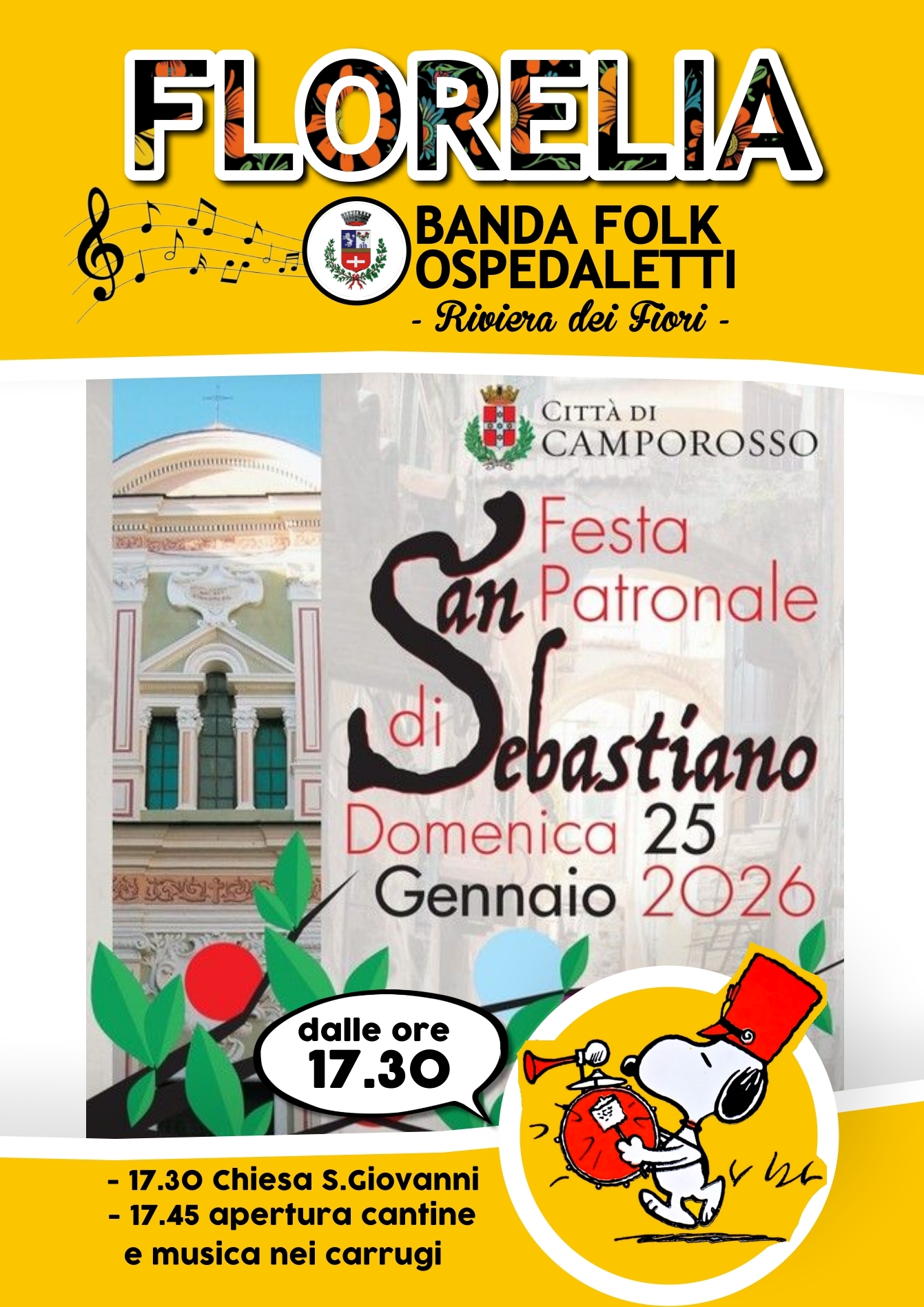 Intrattenimento musicale dell'allegra Banda Folkloristica di Ospedaletti FLORELIA per la meravigliosa e tradizionale FESTA DI SAN SEBASTIANO di CAMPOROSSO.