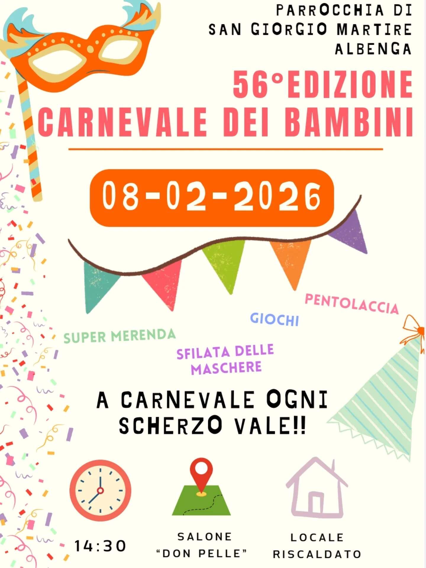 Grande appuntamento questa domenica 8 febbraio per la 56° edizione del CARNEVALE DEI BAMBINI 🎉