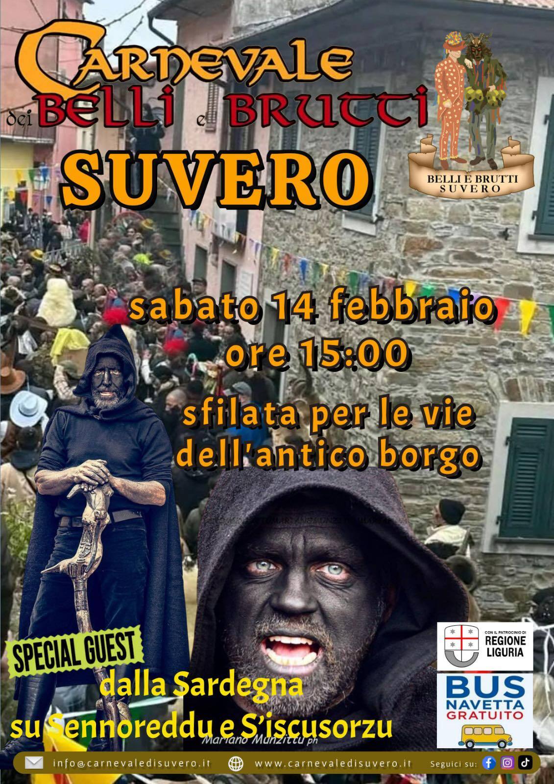 ✅per la PRIMA volta in Liguria direttamente dalla SARDEGNA, per la precisione da Teti S'Iscusorzu Di Teti sfileranno per le vie del antico borgo di SUVERO assieme ai Belli e Brutti!!!