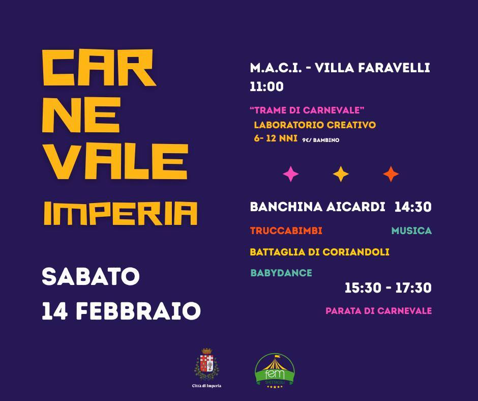Imperia si prepara a vivere una giornata speciale all’insegna del colore, della musica e del divertimento per grandi e piccini. Sabato 14 febbraio la città sarà animata da due appuntamenti dedicati al Carnevale, tra centro cittadino e musei.
