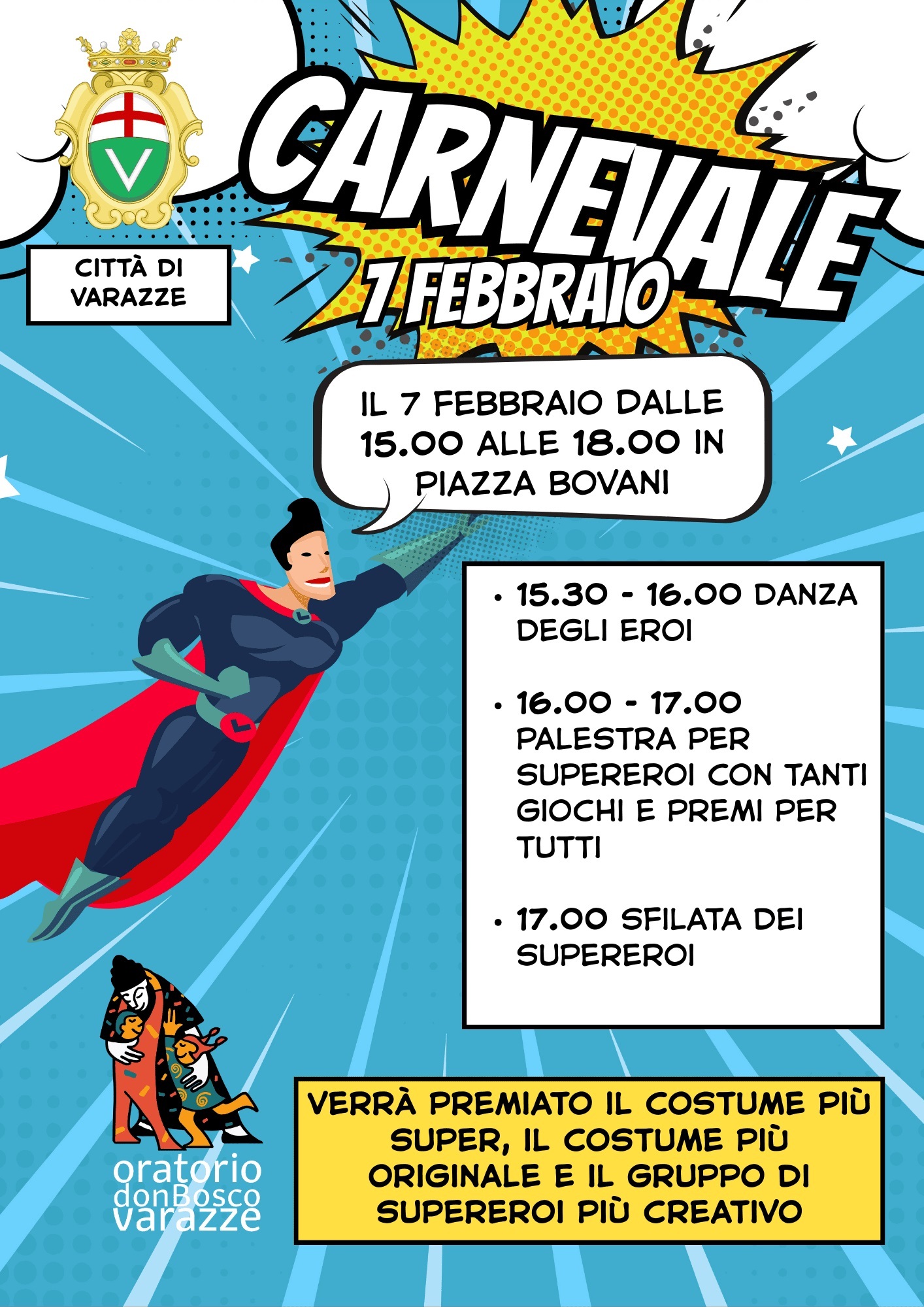 Carnevale a Varazze: supereroi protagonisti in Piazza Bovani il 7 febbraio dalle ore 15